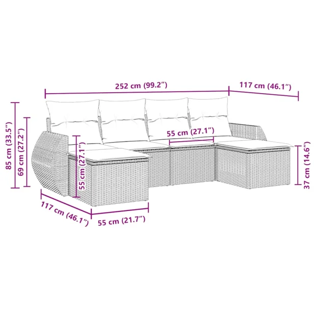 Ta vrtna sedežna garnitura je popoln dodatek za vaše dvorišče, teraso ali verando, saj zagotavlja udoben in vabljiv prostor za klepet z družino in prijatelji ali preprosto za sprostitev in uživanje na prostem.