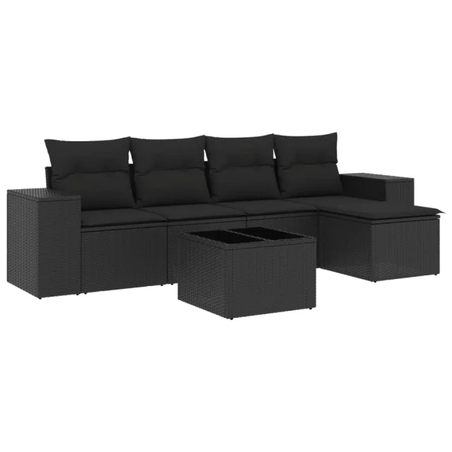 vidaXL Vrtna sedežna garnitura 6-delna z blazinami črna poli ratan
