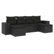 vidaXL Vrtna sedežna garnitura 6-delna z blazinami črna poli ratan