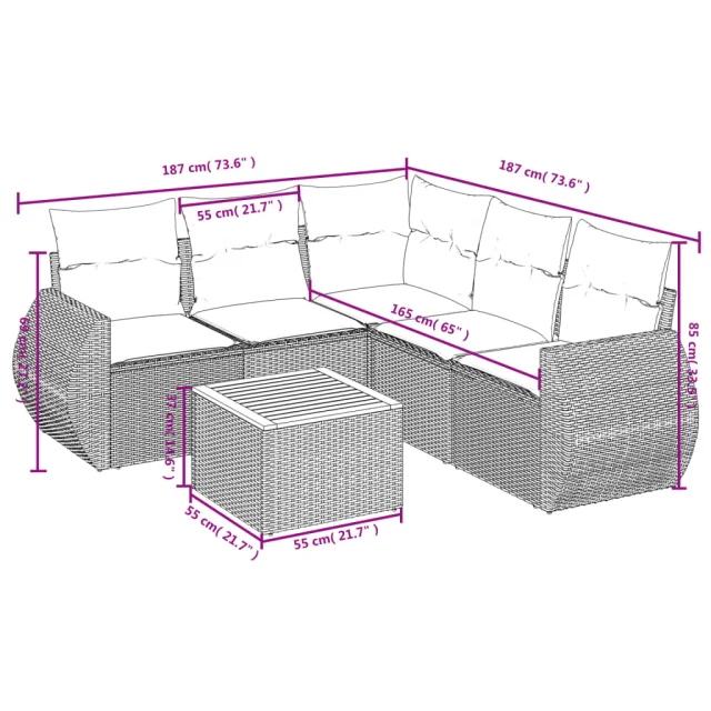Ta vrtna sedežna garnitura je popoln dodatek za vaše dvorišče, teraso ali verando, saj zagotavlja udoben in vabljiv prostor za klepet z družino in prijatelji ali preprosto za sprostitev in uživanje na prostem.