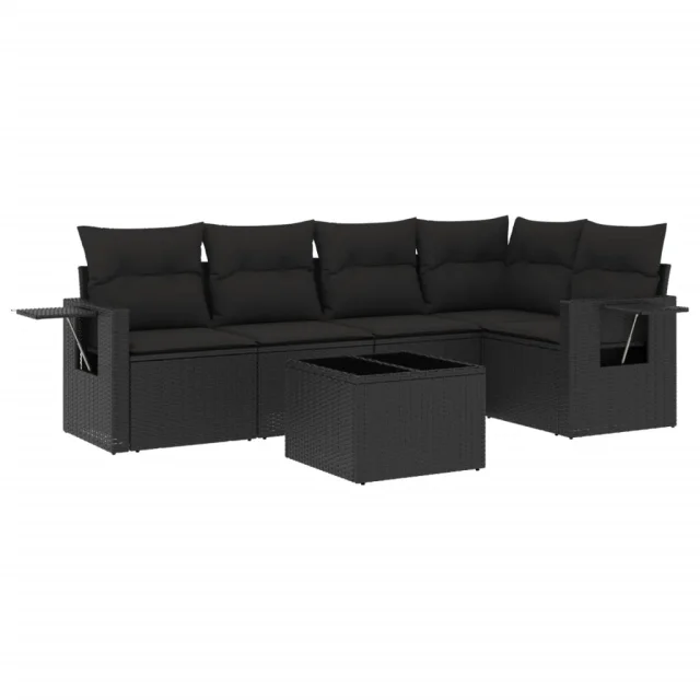 vidaXL Vrtna sedežna garnitura 6-delna z blazinami črna poli ratan