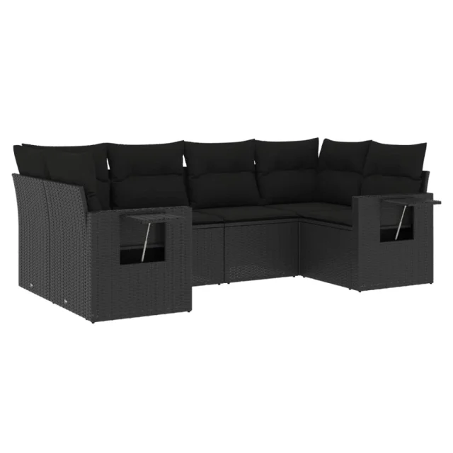 vidaXL Vrtna sedežna garnitura 6-delna z blazinami črna poli ratan