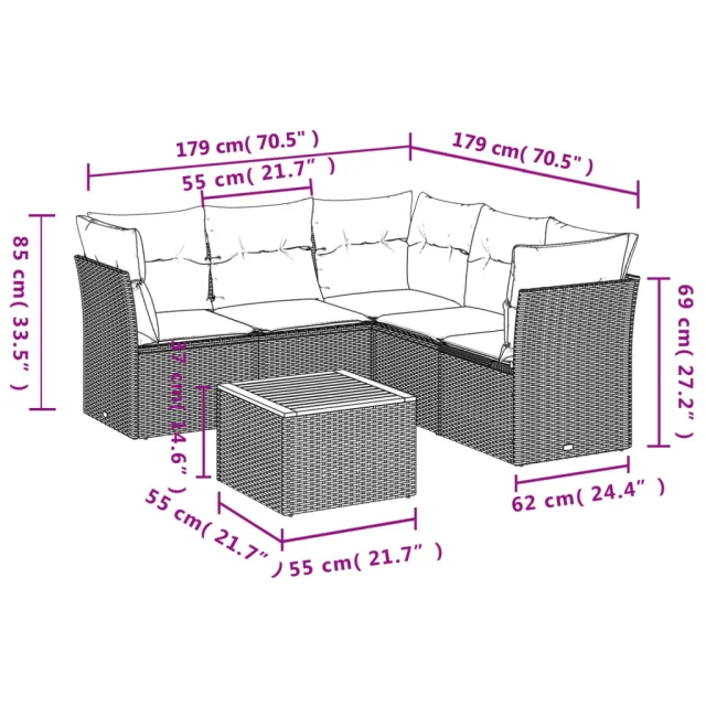 vidaXL Vrtna sedežna garnitura 6-delna z blazinami črna poli ratan