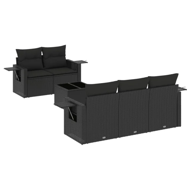 vidaXL Vrtna sedežna garnitura 6-delna z blazinami črna poli ratan