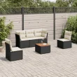vidaXL Vrtna sedežna garnitura 6-delna z blazinami črna poli ratan