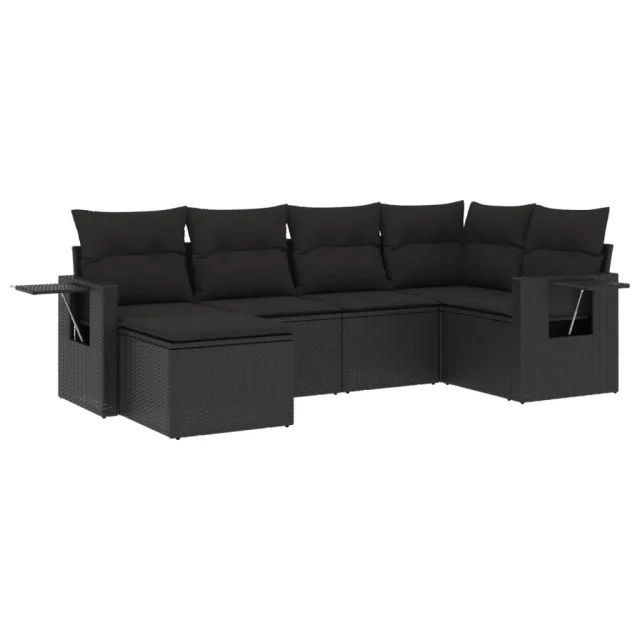 vidaXL Vrtna sedežna garnitura 6-delna z blazinami črna poli ratan