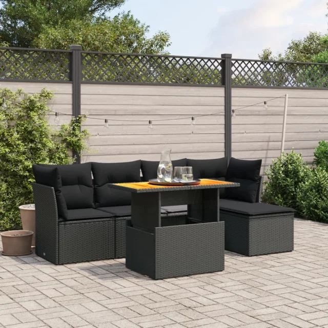 vidaXL Vrtna sedežna garnitura 6-delna z blazinami črna poli ratan
