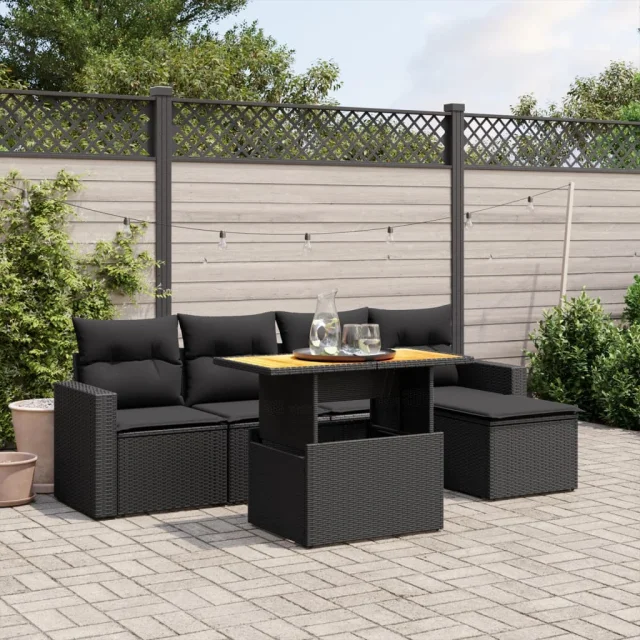 vidaXL Vrtna sedežna garnitura 6-delna z blazinami črna poli ratan