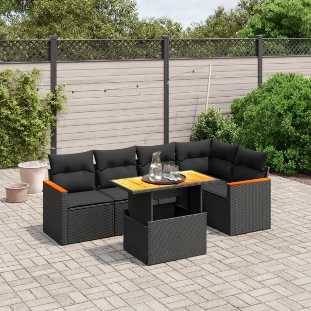 vidaXL Vrtna sedežna garnitura 6-delna z blazinami črna poli ratan