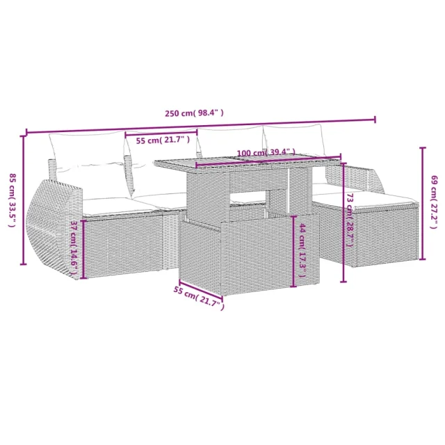 vidaXL Vrtna sedežna garnitura 6-delna z blazinami črna poli ratan