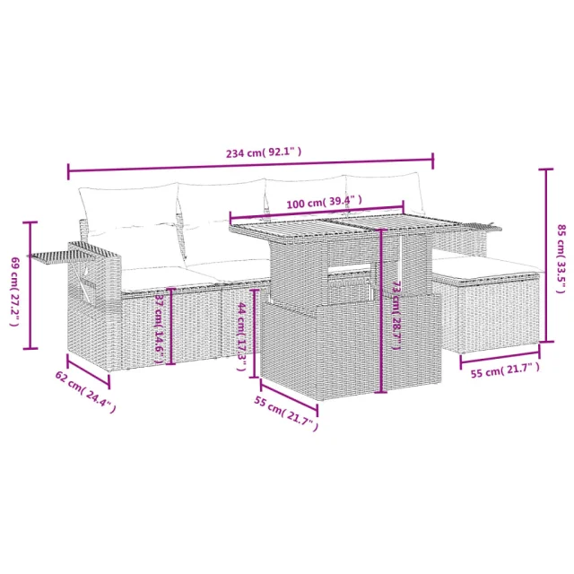vidaXL Vrtna sedežna garnitura 6-delna z blazinami črna poli ratan
