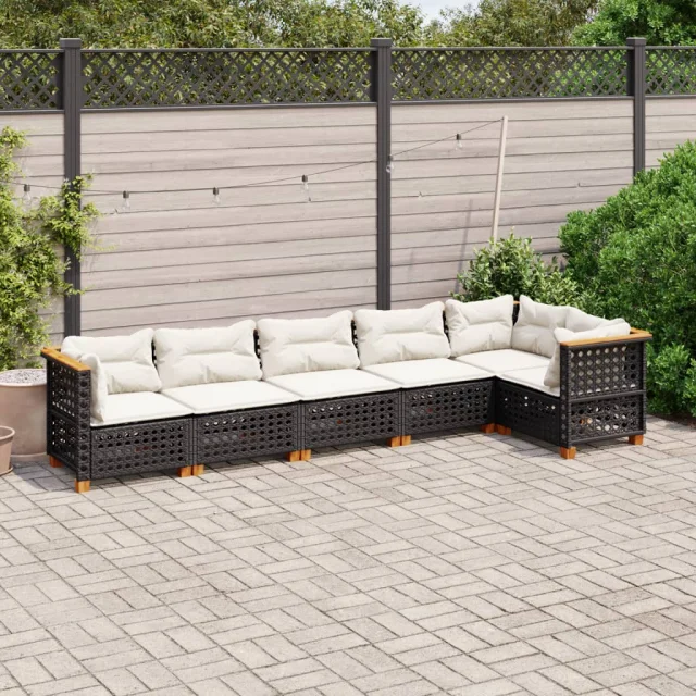 vidaXL Vrtna sedežna garnitura 6-delna z blazinami črna poli ratan