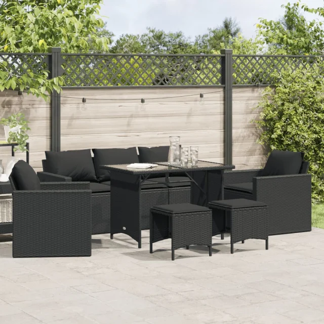 vidaXL Vrtna sedežna garnitura 6-delna z blazinami črna poli ratan
