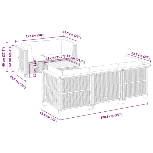 vidaXL Vrtna sedežna garnitura 6-delna z blazinami črna poli ratan