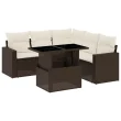 vidaXL Vrtna sedežna garnitura 6-delna z blazinami rjav poli ratan