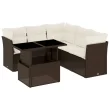 vidaXL Vrtna sedežna garnitura 6-delna z blazinami rjav poli ratan