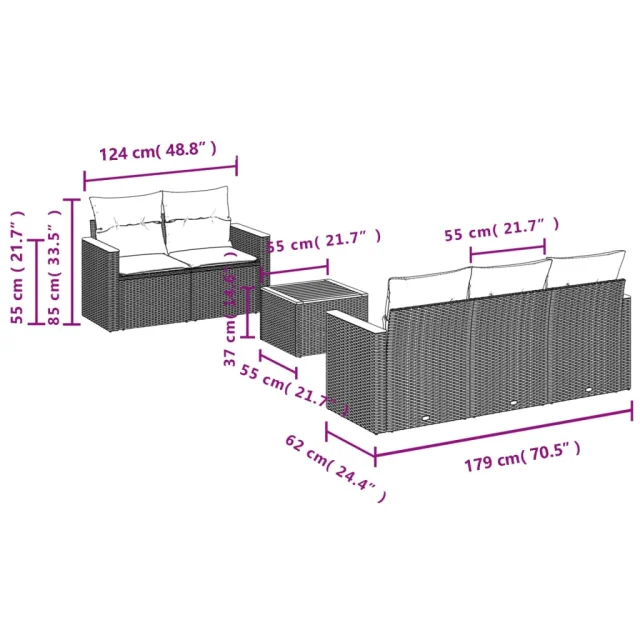 vidaXL Vrtna sedežna garnitura 6-delna z blazinami siv poli ratan
