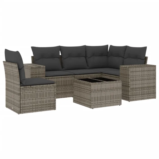 vidaXL Vrtna sedežna garnitura 6-delna z blazinami siv poli ratan