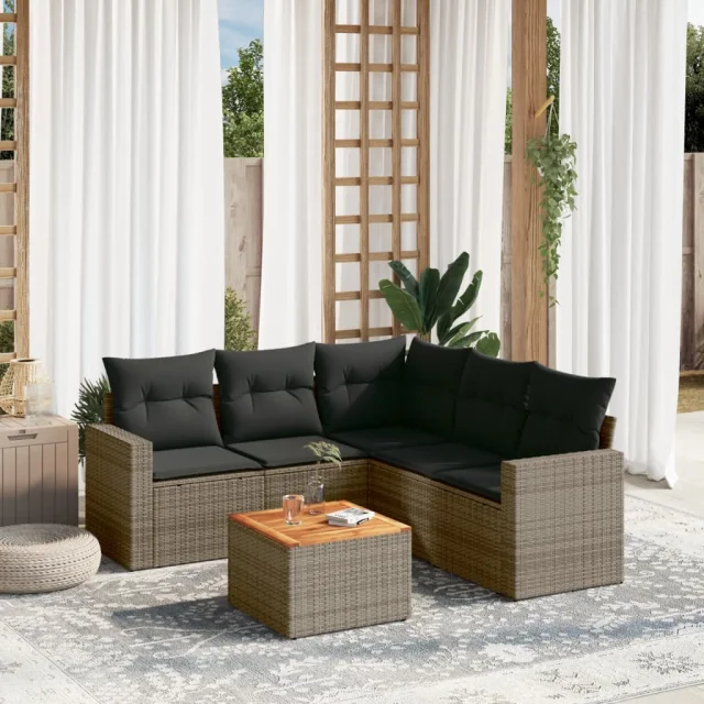 vidaXL Vrtna sedežna garnitura 6-delna z blazinami siv poli ratan