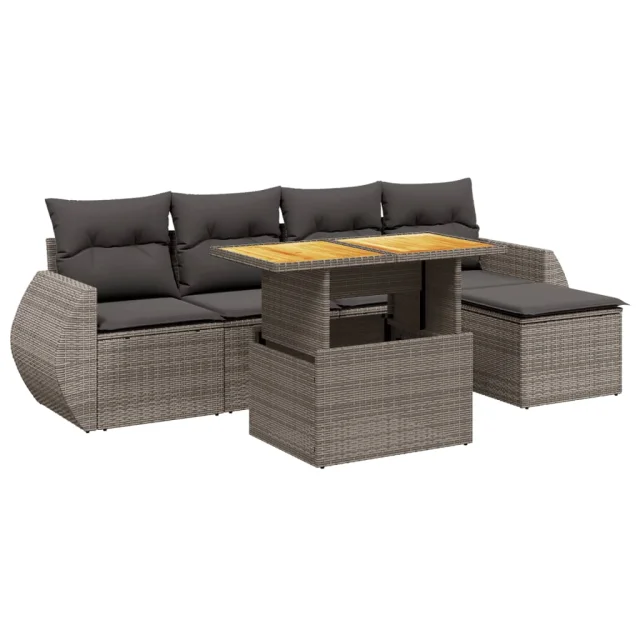 vidaXL Vrtna sedežna garnitura 6-delna z blazinami siv poli ratan