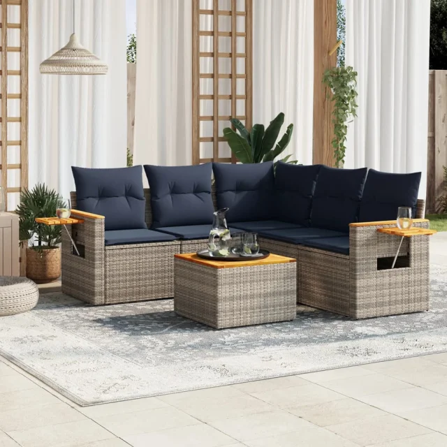 vidaXL Vrtna sedežna garnitura 6-delna z blazinami siv poli ratan