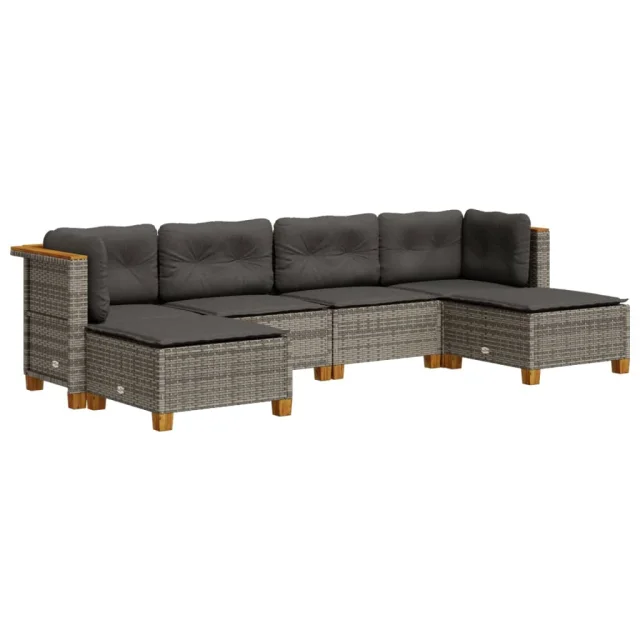 vidaXL Vrtna sedežna garnitura 6-delna z blazinami siv poli ratan