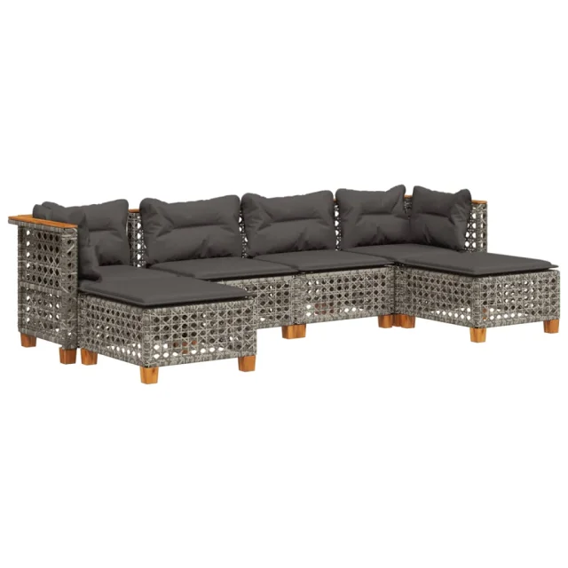 vidaXL Vrtna sedežna garnitura 6-delna z blazinami siv poli ratan