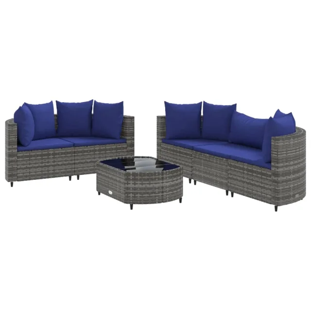 vidaXL Vrtna sedežna garnitura 6-delna z blazinami siv poli ratan