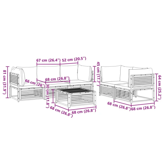 vidaXL Vrtna sedežna garnitura 6-delna z blazinami trden akacijev les