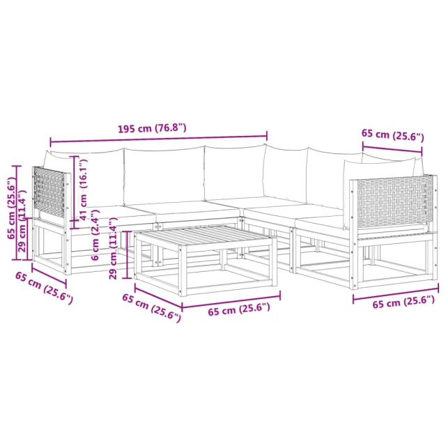 Ta vrtna sedežna garnitura je popoln dodatek za vaše dvorišče, teraso ali verando, saj zagotavlja udoben in vabljiv prostor za klepet z družino in prijatelji ali preprosto za sprostitev in uživanje na prostem.