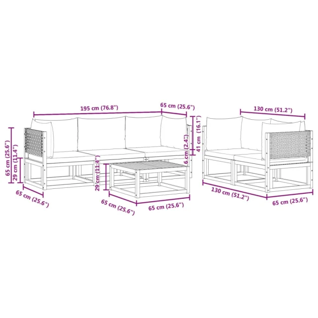 Ta vrtna sedežna garnitura je popoln dodatek za vaše dvorišče, teraso ali verando, saj zagotavlja udoben in vabljiv prostor za klepet z družino in prijatelji ali preprosto za sprostitev in uživanje na prostem.