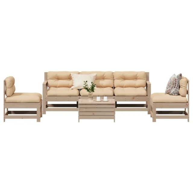 vidaXL Vrtna sedežna garnitura 6-delna z blazinami trdna borovina