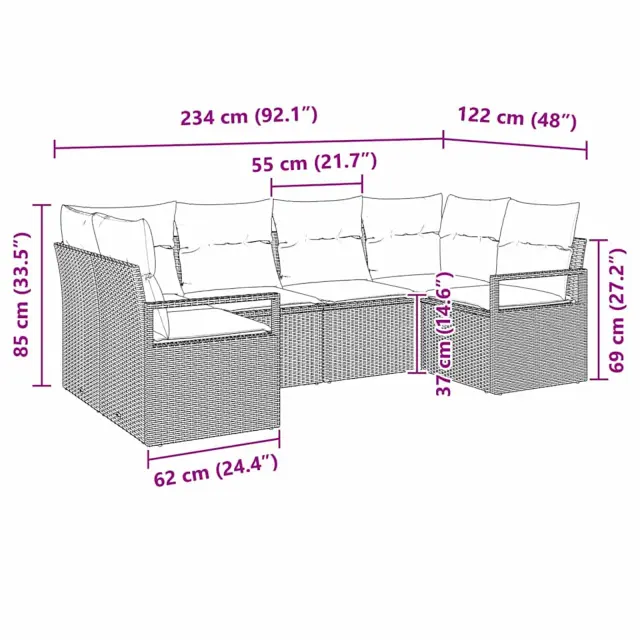 Ta vrtni kavč prinaša sprostitev na prostem s sodobnim stilom in modularno zasnovo. Idealno za velike terase ali majhne patie, omogoča prilagodljive sedežne postavitve za različne priložnosti. Čiste linije in prepletena tekstura dodajata kanček sofisticiranosti, kar ga dela popolnega za sodobne zunanje prostore.