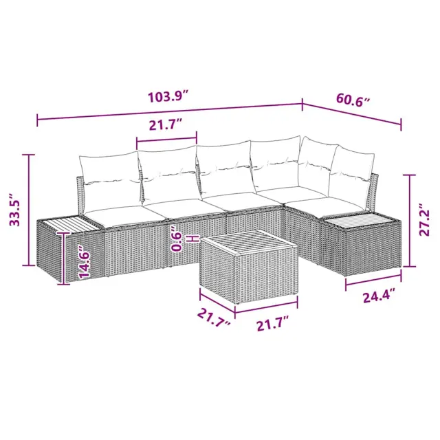 • Funkcije / Funkcionalnost / Oblikovanje: Modularni slog tega kavčnega seta pomeni, da ga lahko prilagodiš svojim prostorskim potrebam. Ne glede na to, ali imaš majhno druženje ali veliko družinsko srečanje, se odlično prilega. Uživaj v njegovem šik dizajnu, ki prinaša svež, moden občutek, kar ga naredi za več kot le pohištvo, ampak tudi za izstopajoč kos v tvojem vrtu.