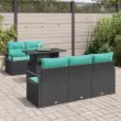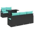 vidaXL Vrtna sedežna garnitura 6 pcs Črna in modra poli ratan