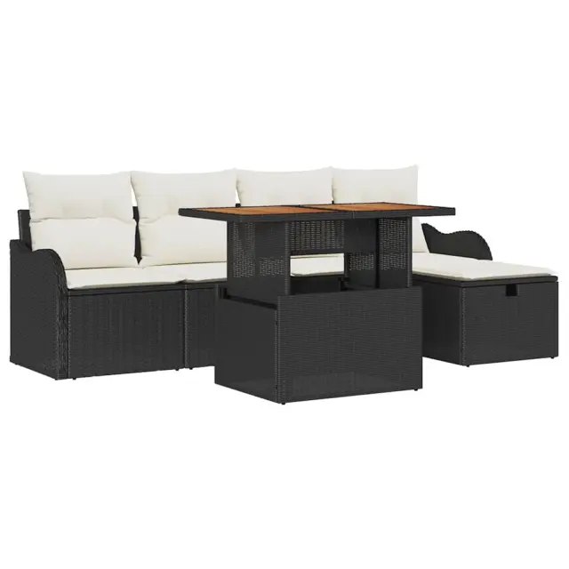 vidaXL Vrtna sedežna garnitura 6 pcs Črna poli ratan
