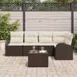 vidaXL Vrtna sedežna garnitura 6 pcs Rjava in bela poli ratan