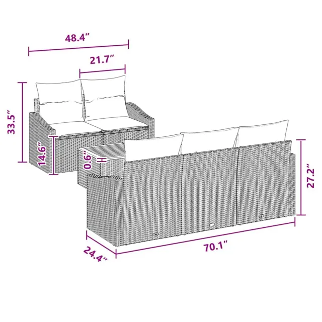 Ta moderna garnitura za vrt iz poliratana združuje eleganco z funkcionalnostjo, da dvigne vsak zunanji prostor. Izdelana za vrt ali teraso, se brez težav zlije z naravo, medtem ko nudi udobno sedežno izkušnjo, ki jo lahko prilagodite vsakemu dogodku.
