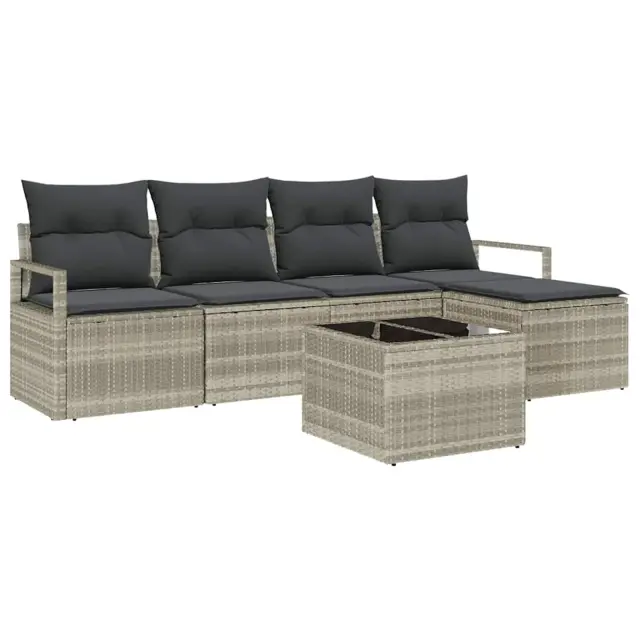 vidaXL Vrtna sedežna garnitura 6 pcs Svetlo siva Poly ratan