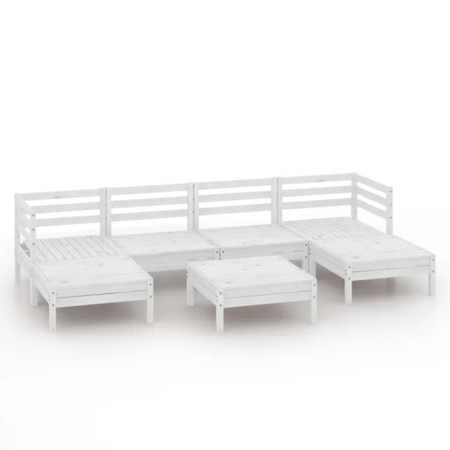 vidaXL Vrtna sedežna garnitura 7-delna bela trdna borovina