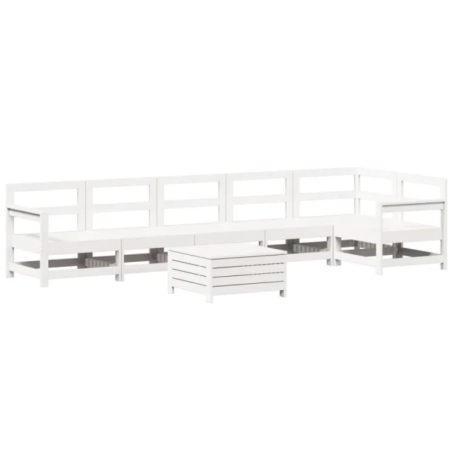 vidaXL Vrtna sedežna garnitura 7-delna bela trdna borovina