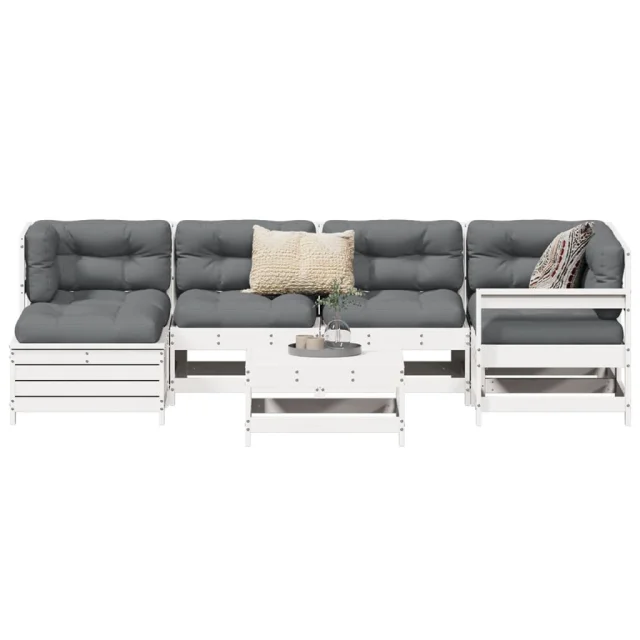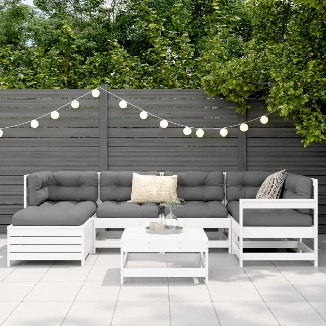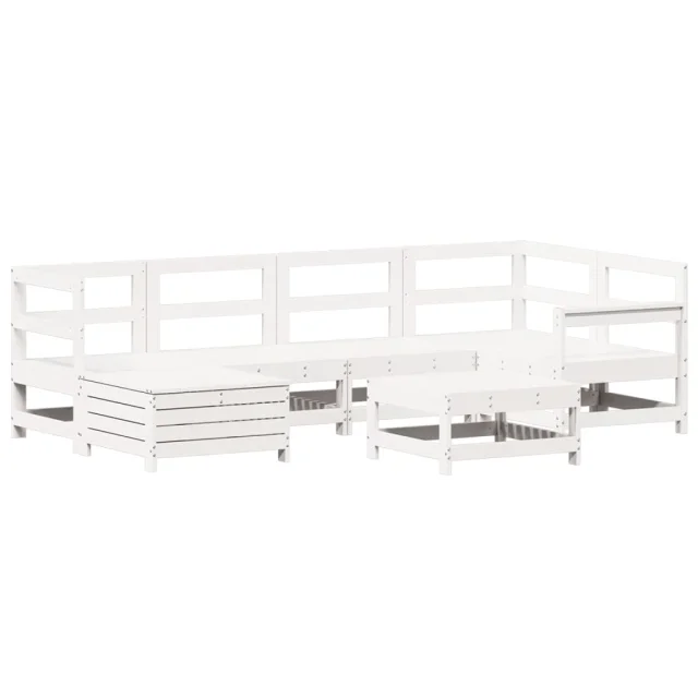 vidaXL Vrtna sedežna garnitura 7-delna bela trdna borovina