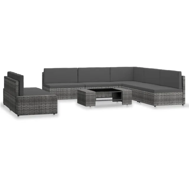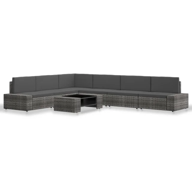 vidaXL Vrtna sedežna garnitura 7-delna poli ratan siva