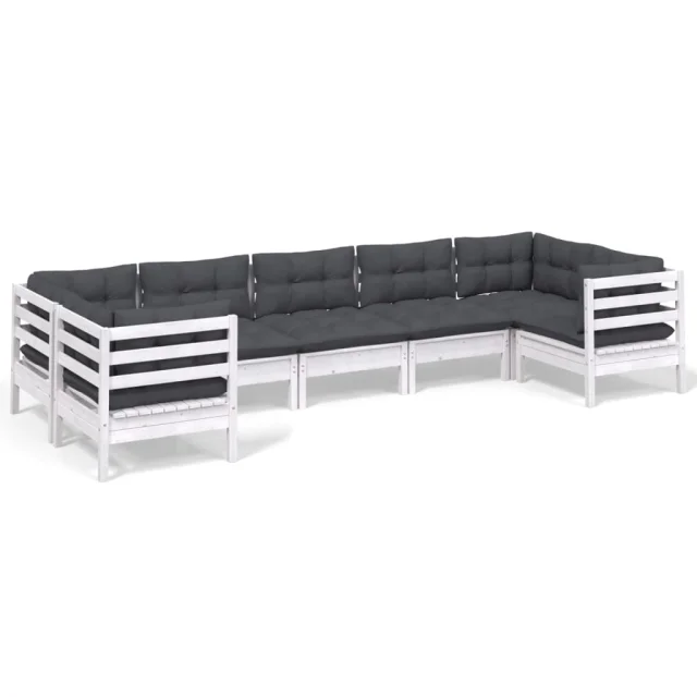 vidaXL Vrtna sedežna garnitura 7-delna z blazinami bela borovina