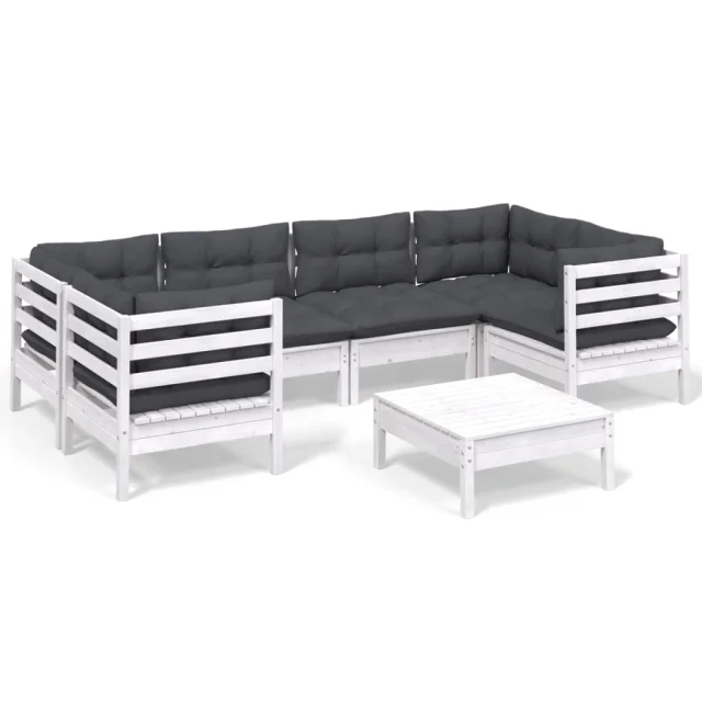 vidaXL Vrtna sedežna garnitura 7-delna z blazinami bela borovina
