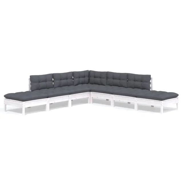 vidaXL Vrtna sedežna garnitura 7-delna z blazinami bela borovina