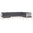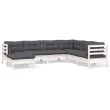 vidaXL Vrtna sedežna garnitura 7-delna z blazinami bela trdna borovina