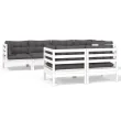 vidaXL Vrtna sedežna garnitura 7-delna z blazinami bela trdna borovina