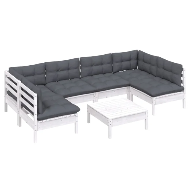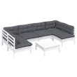 vidaXL Vrtna sedežna garnitura 7-delna z blazinami bela trdna borovina
