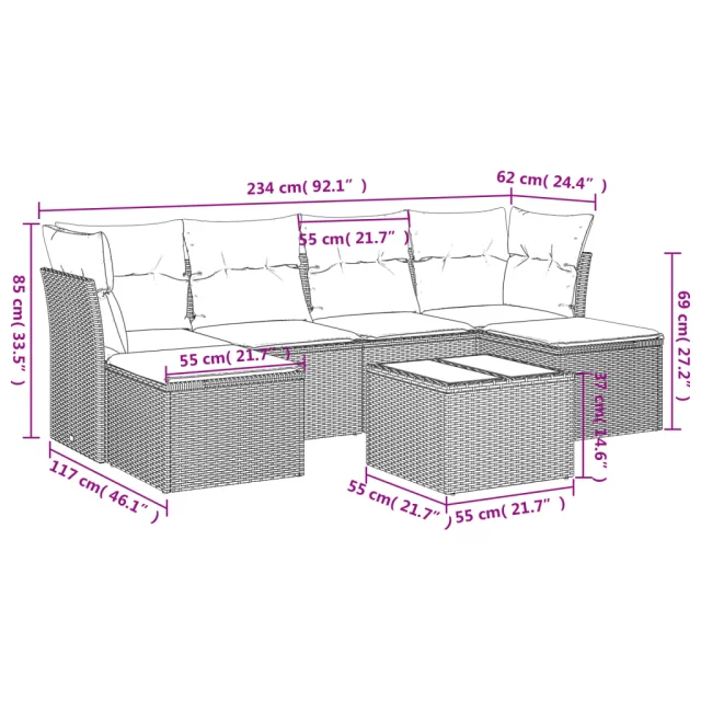 vidaXL Vrtna sedežna garnitura 7-delna z blazinami bež poli ratan